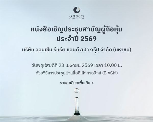 ผู้ให้บริการออนเซ็นสไตล์ญี่ปุ่นแห่งแรกในประเทศไทย โดดเด่นด้วยประเภทบ่อออนเซ็นที่หลากหลาย และบริการสปาแบบครบวงจร พร้อมให้คุณหลีกหนีความวุ่นวาย และได้พักผ่อนทั้งกายและใจ
